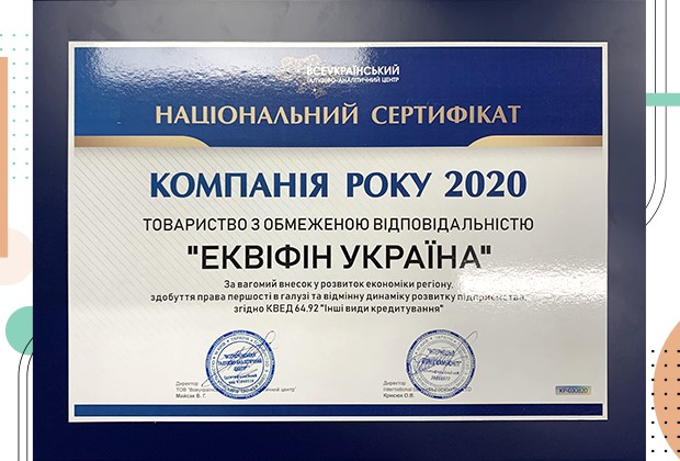 Компанія «ЕКВІФІН УКРАЇНА», відома клієнтам під торговою маркою MisterCash, отримала почесне звання “Компанія року”. Цією нагородою Всеукраїнський галузево-аналітичний центр щорічно відзначає найбільш надійні та перспективні підприємства України. Мета центру – створити реєстр прозорих та інвестиційно привабливих компаній у різних галузях економіки. Тому команда MisterCash пишається, що завдяки якісній роботі нам вдалося долучилися до лав найкращих.